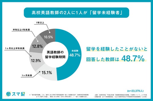 ●高校英語教師の留学未経験率、約50%。実は教師も留学を語れない?