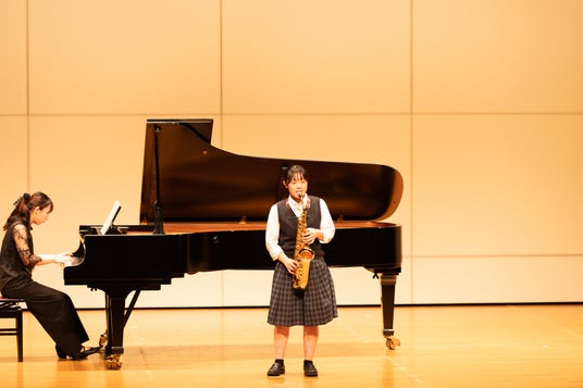 「演奏した曲は、イベール作曲のコンチェルトで、本来はオーケストラのために作られた曲なので、今日はピアノをオーケストラだと思い、コンチェルトのように堂々と演奏しました。緊張したのですが、会場全体に音を響かせる気持ちで楽しく演奏できました。普段は管楽器やサックスに特化したコンクールに出場しているので、今回のようなジャンルを問わないコンクールでは、他楽器特有の表現を学ぶことができました。将来はサックスの奏者として、色々な演奏活動を通して音楽と共に生きていきたいと思っています。今日の結果は、自分ひとりの力で取れたものではないので、周りの方にも感謝をしながら喜びを噛み締めたいと思います。」