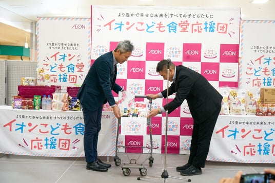 イオンは全国約1万8,000カ所に店舗を展開しています。店舗は買い物の場として提供するだけでなく、各地域で抱えている社会課題やさまざまな問題を解決する場として運営していきたいというイオンの思いのもと、全国各地のこども食堂とネットワークをもつむすびえと2020年12月にパートナーシップを締結し、「イオン こども食堂応援団」 を立ち上げました。