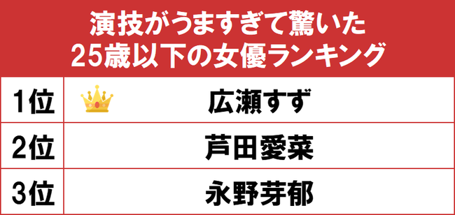 演技がうますぎて驚いた25歳以下の女優ランキング