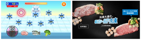 AQUAの特許技術(※)「おいシールド冷凍」を楽しく学べる「しもとりゲーム」 ※霜取り運転時に冷凍室内に流れ込む暖気をカバーで覆い、庫内温度の上昇を抑える技術。