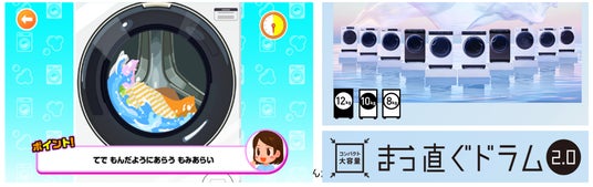 「まっすぐドラムでせんたくたいけん」は、AQUAのドラム式洗濯乾燥機「まっ直ぐドラム」を使ってご家庭での洗濯を疑似体験できるゲームです。「ポケットに物をいれたまま洗濯をしない」、「服を重ねたまま洗濯をしない」など、洗濯をするときのポイントや洗濯後の衣服を畳むところまで、実生活に活かせることを楽しみながら学ぶことができます。ゲームを通して、お子様が洗濯のお手伝いを率先して行うなど、家族のコミュニケーションのきっかけになるような内容です。