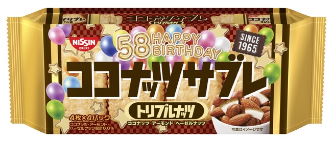 日清シスコ株式会社 (社長:浅井 雅司) は、「ココナッツサブレ 58周年誕生日パッケージ」「ココナッツサブレ <トリプルナッツ> 58周年誕生日パッケージ」「ココナッツサブレ <発酵バター> 58周年誕生日パッケージ」を2023年7月上旬より全国で順次発売します。
