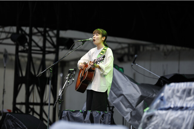 2日目の『米フェス』は、米フェスが主催するオーディション『COME100オーディション’22』の準グランプリに輝く八生(やよい)のオープニングアクトで幕を開けました。ギター1本で弾き語りする女性シンガーである彼女の独特な歌声と歌詞の世界観が審査員の高い評価を得て受賞が決まった。演奏曲は「翡翠」と「泳げぬ鯨」。