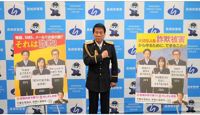 この度、警察庁特別防犯対策監の杉良太郎氏が、長崎県警察本部を訪問しました。11月末時点で前年同時期から20件増加している特殊詐欺の被害件数を聞いた杉対策監は、「一人一人が詐欺撲滅の意識を持って、被害防止に協力してほしいです。」と、県民一丸となって特殊詐欺被害防止に取り組むことの大切さを伝えました。