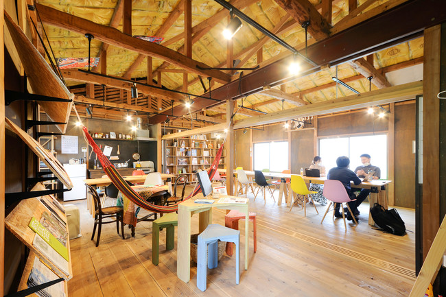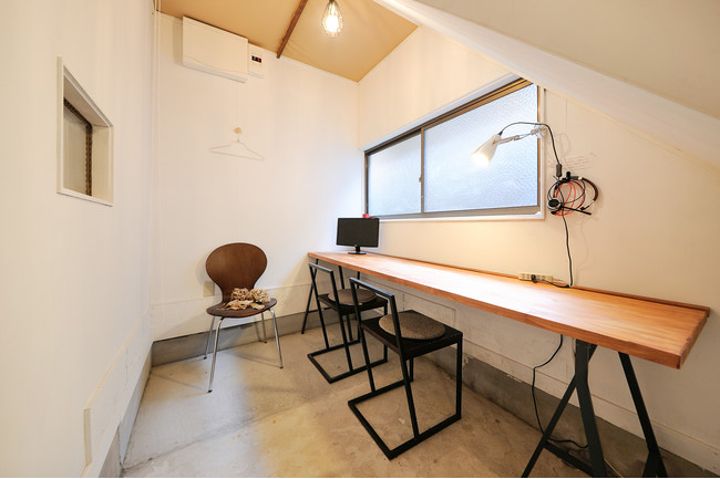おみやげ屋であったマルダイという店舗を、DIYを交えてリノベーションしました。交流が生まれるオープンスペースと、集中したい時に有効なカウンターテーブルのスペース。オンライン会議におすすめの個室など、さまざまなニーズに応えられるようゾーニングしました。建築士の経験と知見を活かして、日々バージョンアップするスペースを目指しています。