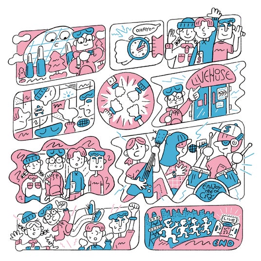 昨年に引き続き、イラストレーターのTact Sato氏が制作を担当。今回は、サカエの街を歩きながら様々なライブハウスでアーティストによって繰り広げられる熱いライブに、驚き興奮する様子がストーリー仕立てに表現された、 ”新しい音楽との出会い”がテーマのSAKAE SP-RINGを象徴する素敵なビジュアルです。