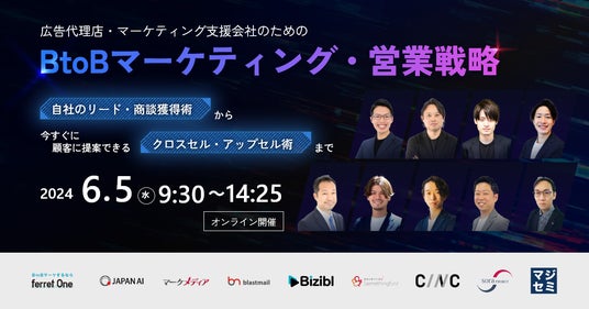 株式会社Bizibl Technologies(本社:東京都千代田区、代表取締役:花谷燿平、以下当社)は、株式会社マーケメディアが2024年6月5日(水)に開催する「広告代理店・マーケティング支援会社のためのBtoBマーケティング・営業戦略~"自社のリード・商談獲得術"から"今すぐに顧客に提案できるクロスセル・アップセル術"まで大公開!~」に登壇することをお知らせいたします。本イベントは、広告代理店やマーケティング支援会社がBtoBマーケティングと営業戦略を効果的に進めるための具体的な手法をお伝えするセミナーです。