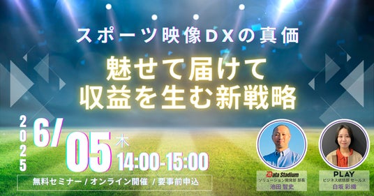 株式会社PLAY(本社:東京都渋谷区、代表取締役社長:黒田和道)は、2025年6月5日(木)14:00より、データスタジアム株式会社との共催による無料オンラインセミナーを開催いたします。