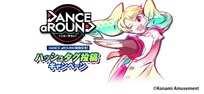 また、稼働開始を記念して本日から「DANCE aROUND稼働記念!ハッシュタグ投稿キャンペーン」を実施中です。Twitterで指定のハッシュタグをつけて投稿すると抽選で20名様に限定オリジナルe-amusement passカードが当たりますので、是非この機会に『DANCE aROUND』をお楽しみください。