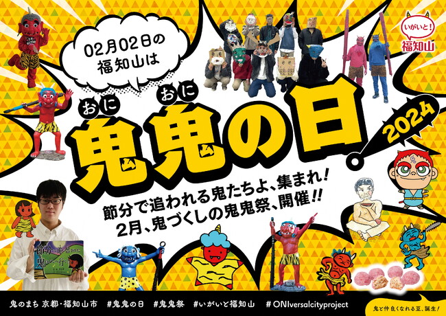 “鬼のまち”福知山市には、多くの地域で恐れられる存在である“鬼”を親しむ、少し変わった文化が根付いており、2月2日を鬼鬼の日と名付け「節分で追い出される鬼たちよ、集まれ!」と鬼を悪者にしない独自の節分カルチャーを発信してきました。