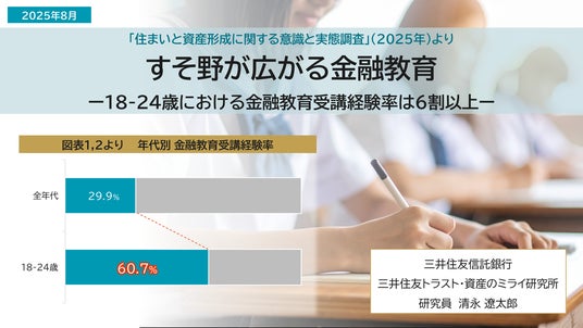 三井住友信託銀行株式会社が設置している「三井住友トラスト・資産のミライ研究所」(所長:丸岡 知夫)(以下、ミライ研)は、1万人(全国の18歳~69歳)を対象とした独自アンケート調査を2025年1月に実施しました。この調査をもとに、国内における金融教育の浸透と、その内容に関する分析を行いました。