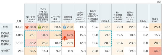 企業型DCでは、法令上、事業主が加入者に対し適切な所謂「投資教育」を行うことが義務付けられています。そのため、資産形成について学んだと認識している人が多いものと想定されます。