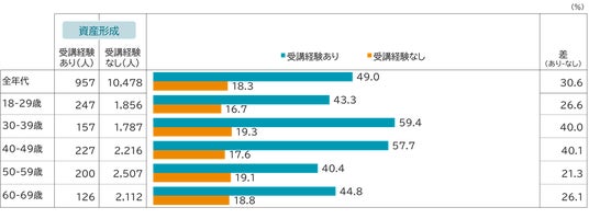 ※ 金融教育の受講経験者は、「あなたは、これまでに学校や職場でお金についての授業・教育を受けたことはありますか。受けたことのある時期をすべてお選びください。」に対し「これまでにそのような授業・教育を受けたことはない」以外の回答をした人