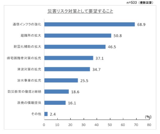 - 渇望「早い災害情報公開」:「通信インフラ強化」68.9%