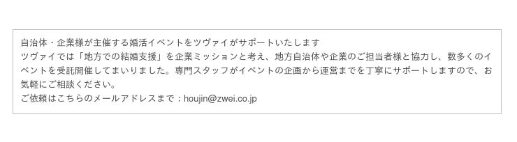 ツヴァイでは「地方における婚活支援」を企業ミッションと考え、地方自治体や行政と協力し、地方での出会いの機会創出に向けて数多くの取組みを行ってきました。