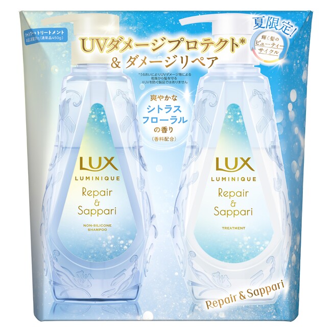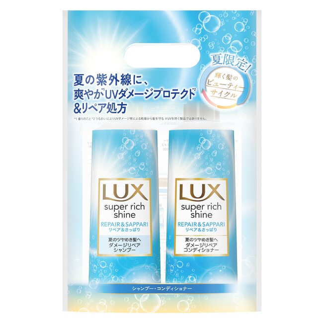 今回は紫外線による髪へのダメージや汗によるべたつきが気になる人に向けた夏限定品として「ラックス スーパーリッチシャイン リペア&さっぱり ポンプペア」が新登場します。