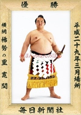 ▲(左)平成29年3月場所優勝 横綱 稀勢の里寛関