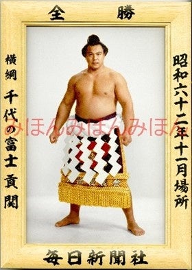 ▲(左)昭和62年11月場所全勝 横綱 千代の富士貢関