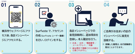 横浜市各区における地域のニーズや課題等を把握し、横浜市における施策の参考にするため、デジタルプラットフォーム「Surfvote(サーフボート)」を活用し、全市民を対象とした意見募集を実施します。