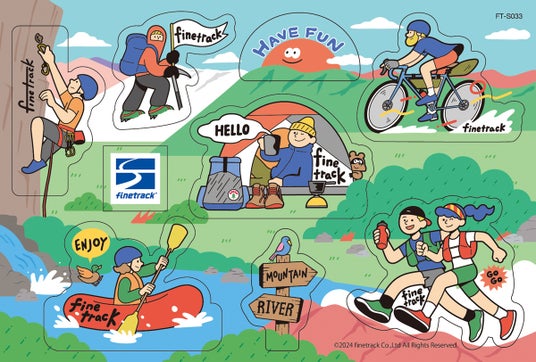 自身もトレイルランナーで遊び手でもあるイラストレーターのHisae Sasakiさんがデザインしたオリジナルイラストステッカー。finetrack創業20周年の節目の年に、遊び手の皆様が様々なアクティビティを楽しむ姿をイメージして作成いたしました。アクティビティごとに剥がせる型抜きタイプ。屋外でもご利用いただけるよう、耐候性・耐水性があり破れにくいユポタックにラミネート加工を施しています。