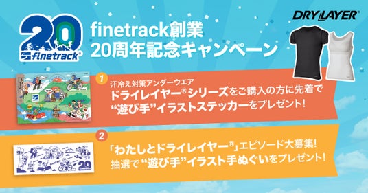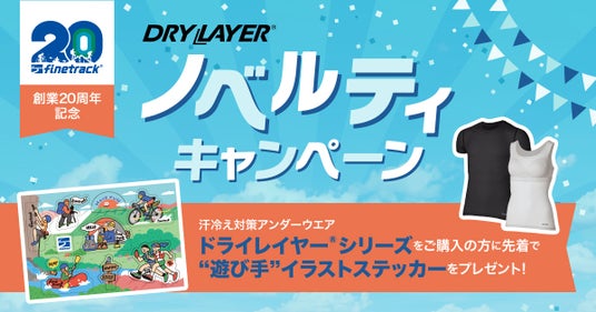 期間中、対象のドライレイヤーをご購入の方に先着でもれなくfinetrack創業20周年記念“遊び手”イラストステッカー(非売品)をプレゼントいたします。