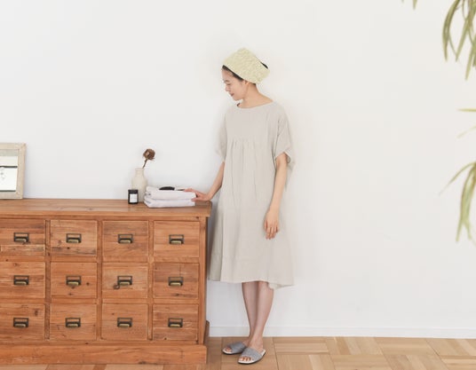 なにかとやることの多い、女性のお風呂上りに1枚あると便利なワンピースです。