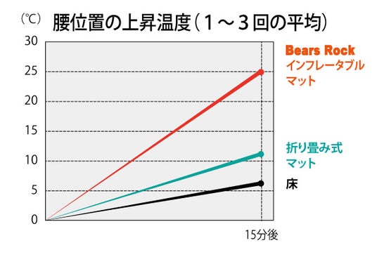 その結果、最も暖かさを感じられたのがBears Rockのインフレータブルマット5cmでした。