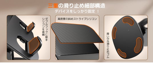 このタブレットスタンドは、高額を投じてドイツのトップデザインチームが設計しました。三重の滑り止め構造で安定性が75%向上し、2,341,366回のタッチテストに合格。高密度斜めストライプシリコンのパネルがデバイスの滑落を防ぎ、ナノレベルの厚みを持つシリコンパッド付きデュアルフックがしっかりと固定します。10.5mm純金属ベースは優れた衝撃吸収と滑り止め効果を発揮し、デバイスを確実に保護。高級な防滑タブレットアームが、長時間の使用でも安定したサポートを提供します。