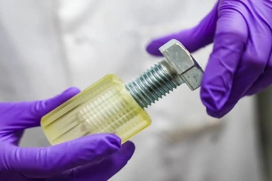 この金属ボルトのマスクを手作業で作成するには、1つ250ドルほどかかりますが、Resist(TM)で内側にねじ切り機能を持たせて造形すると、1つわずか5ドルで造形が可能。