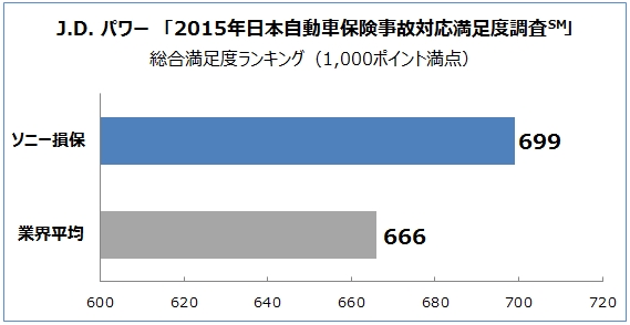 ソニー損害保険株式会社(URL:http://www.sonysonpo.co.jp/ 本社:東京都大田区蒲田5-37-1 アロマスクエア11F、代表取締役社長 丹羽淳雄、以下「ソニー損保」)は、株式会社J.D. パワー アジア・パシフィック(代表取締役社長 鈴木郁、以下「J.D. パワー」)が実施した、「2015年日本自動車保険事故対応満足度調査SM」において、損害保険業界1位となりました。
