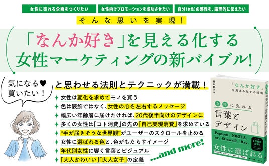本書では、“それがなぜ女性に響くのか”を、言葉・色・デザインの視点から徹底的に分析。現場で活かせる具体例を交えながら、女性の心に届く企画やクリエイティブの要点を、わかりやすく解説します。
