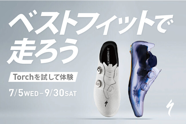 スペシャライズドは、ロードシューズTorchの至高の履き心地をより多くのライダーに伝えるため、2023年7月5日(水)から9月30日(土)の期間、「ベストフィットで走ろう」キャンペーンを開催。特別価格でのフットベッド作成、購入から30日間の無料返品、豊富なサイズの試し履きコーナー設置と多様なコンテンツで、ライダーが最適なシューズを見つける機会を後押しします。