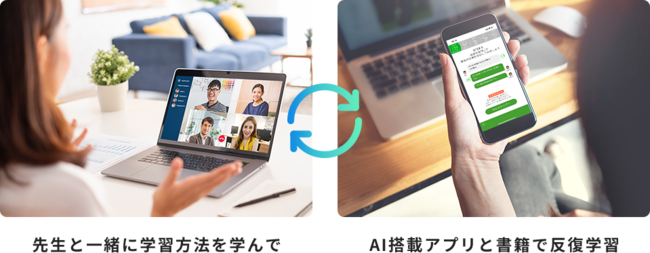 週に1回のオンラインレッスンで正しい学習方法を学び、AI搭載の学習アプリ「レシピー」で効率的に自学習ができるので通常の学習時間より平均35%減の学習時間で目標スコアに到達します。(※弊社調べ)