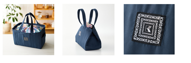 「レジかごにつけられる保冷バッグ」は、レジかごにぴったり収まり、また内側にアルミ生地を使用することで保冷・保温性を高め、スーパーなどでの食材のお買い物の際に重宝します。上部の巾着部分の生地に「Disney100」テーマの特別アートを使いつつ、全体はネイビーカラーで正面に紀ノ国屋のロゴネームをあしらいました。シックな雰囲気とディズニーの楽しさを醸し出すデザインです。