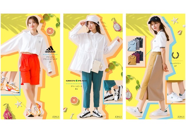 ジョイナスでは、「READY GO!SUMMER 2022」と題し、初夏のおすすめファッションやファッショングッズ、ライフスタイルグッズ、初夏の太陽に負けないUV対策グッズをはじめとしたシーズンアイテムなど、最旬のおすすめ商品を館内サイネージとジョイナス公式インスタグラムで紹介!「ACTIVE SUMMER(ファッション・グッズ・コスメ)」、「SUMMER WORK STYLE (ファッション・グッズ)」、「SUMMER HOLIDAY(ファッション・レイングッズ・コスメ)」の3つのテーマごとに、約30店舗の初夏のトレンドスタイルやサマーシーズンアイテムを提案いたします。