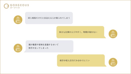 今回の調査結果を受け、ゴージャスでは「医師同士で、恋愛や結婚観について語り合う」座談会の開催を決定!同じ立場だからこそ話せる悩みや本音に向き合う場として、医師ユーザーの声を活かした企画を継続していきます。
