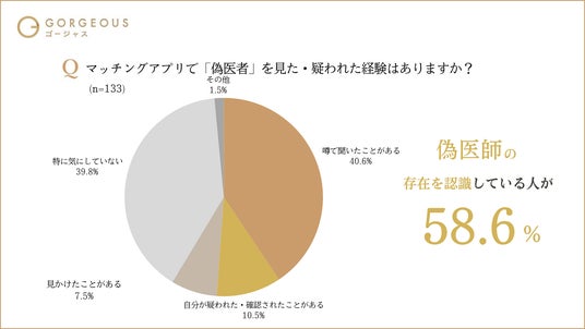 - マッチングアプリにおける“偽医師”の存在を認識しているユーザーは58.6%