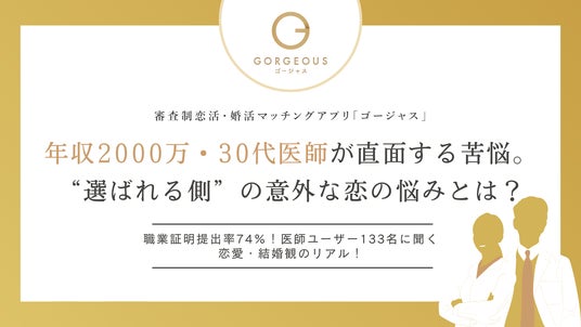 アイザック株式会社(本社:東京都渋谷区、代表取締役社長:田中和希)が運営する、完全審査制の恋活・婚活マッチングアプリ「ゴージャス」は、2025年6月に医師ユーザーを対象とした恋愛観・結婚観に関するアンケート調査を実施しました。