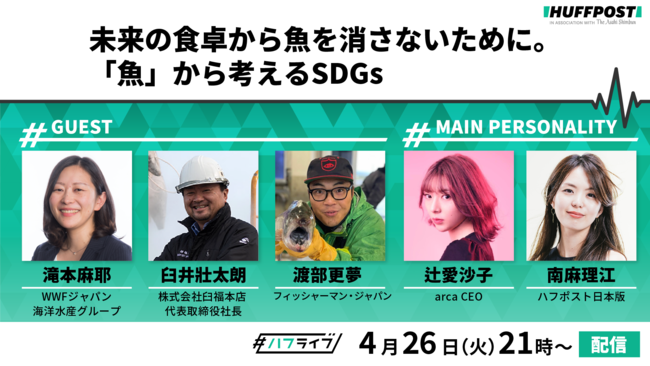 BuzzFeed Japan株式会社(本社 東京都千代田区、以下、BuzzFeed Japan)が運営する「ハフポスト日本版」は、4月26日(火)21時から「魚とSDGs」をテーマにしたオンライン番組を配信します。日本食のアイデンティティともいえる「お寿司」を入り口に、海の豊かさをどう守るのか、私たち一人一人にできることは何かを考えます。