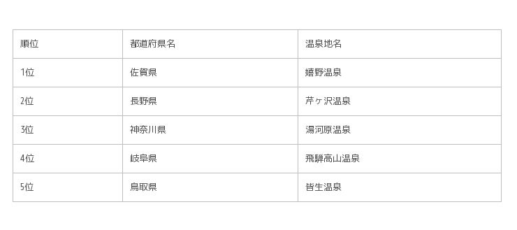 - 佐賀県・嬉野温泉が昨年に続き1位 -
