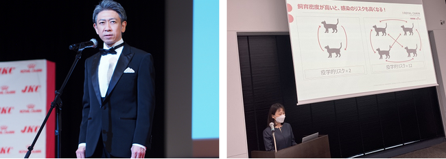 表彰式に登壇したロイヤルカナン ジャポン プロフェッショナル事業部 部長の橋本将司は、「よりよい繁殖の向上を掲げているこの賞に、ロイヤルカナンがスポンサーとして携われることは大変光栄です。犬の真の健康を実現するためには、ブリーダーをはじめとした専門家の皆様からペットオーナーまで、犬を取り巻くすべての方々が正しい知識を持ち、それぞれの役割を適切に果たしていただけるような環境づくりが重要です。ロイヤルカナンは引き続き専門家の皆様への支援を続けるとともに、連携を強化して参ります」と述べ、犬を取り巻く環境の更なる向上に、今後も尽力する決意をお伝えしました。