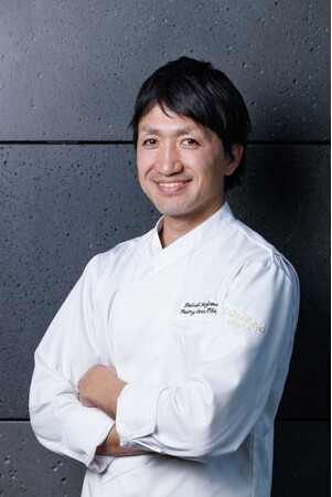 2008年に神戸のハイエンドホテルからキャリアをスタートさせた児島は、基礎から生菓子、焼き菓子、アイスクリーム、ウエディングケーキ、マジパン、飴細工などの技術を学び、2012年にはカフェを併設したペストリーショップにてショコラの経験を積みました。同年、西日本洋菓子コンテストにて「チョコレート工芸菓子部門」にて優秀賞を受賞した後、2017年にはホテルにてオープニングのペストリーチームを牽引し、商品開発に貢献。2019年に就任したペストリーショップでは、繊細なスイーツのクリエイションにメディアからも注目されました。2022年からはコンラッド大阪のペストリースーシェフに就任。新たなスイーツの創作に力を入れています。