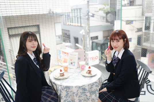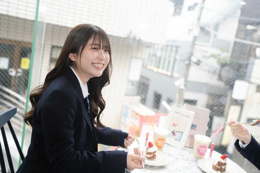 かわいいケーキとドリンクを楽しみながら、ふたりのトークは大盛り上がり♪ テーマがスクールメイクなので、制服での撮影となったので大学1年生の優花ちゃんは「また制服が着れると思わなかったからうれしい」と笑顔。この3月に高校を卒業したばかりのゆめちゃんはやり残したことがあるようで・・・。