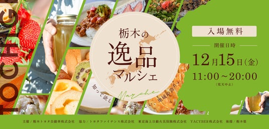 YACYBER株式会社(所在地:大阪市中央区、代表取締役社長:唐澤太郎)は、栃木トヨタ自動車株式会社(所在地:栃木県宇都宮市、代表取締役社長:新井孝則)主催「栃木の逸品マルシェ」に参加いたしました。