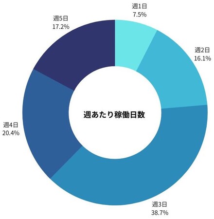 フリーランスの中には、自分自身の事業や、起業準備、子育てや介護といった家庭の事情と仕事を両立するため、週2~4日で稼働するケースが多くなっています。