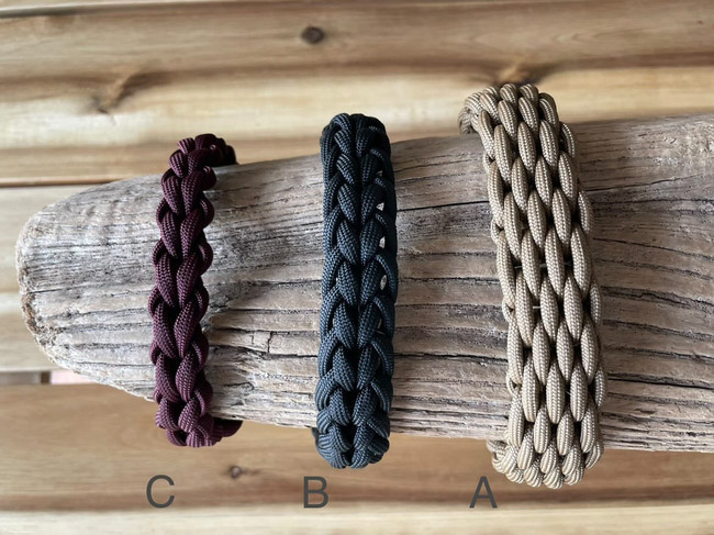 パラコードリードに使う素材は、パラシュートなどに使用されるナイロン製の丈夫な素材で出来ており、軽くて水に強い性質を持ち、人の体重を支えられるくらいに耐久度が高いのが特徴で、わんちゃん用リードに適した素材になります。丈夫なのに加えて軽さと乾きやすさを兼ね備えており、機能性にも優れています。更に使えば使うほど手に馴染み、カラーも変化していくのが魅力です。7種のカラーからお好みの色を選んでオリジナルリードを作成していただきます。今回のパラコードリードは2,2mのロングリードとなっており、手持ちリードだけでなくショルダーリードとしても使用できるため、お出かけの幅が広がります。