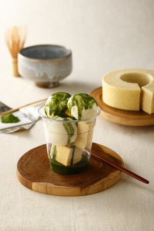 バウムクーヘンとジェラートに、日本らしい抹茶の要素を加えたきこりけーきであり、日本で初めて誕生したきこりけーきです。点てたての抹茶をたっぷりかけることで、あたたかいバウムクーヘンと冷たいジェラートが溶け合った新しいスイーツが食べられ、最後にはすべてが混ざり合った抹茶を飲むことができます。