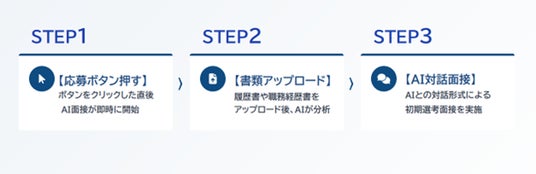 本実証では、応募者が応募ボタンを押した直後に、AI面接官による一次面談が即時に開始される仕組みを構築しました。応募者は履歴書や職務経歴書をアップロード後、そのままAIとの対話形式による初期面接に進みます。
