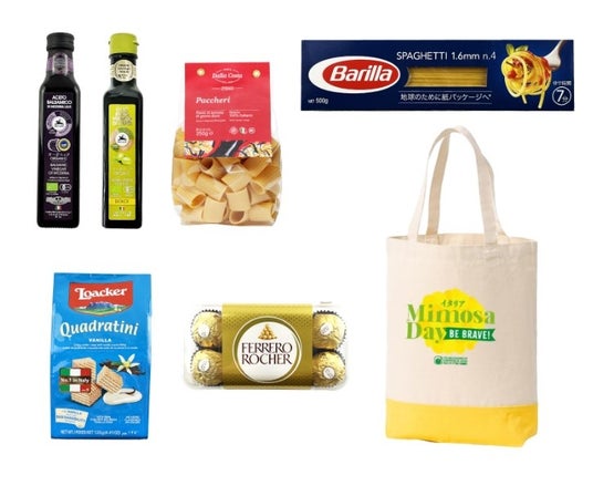 北野エース様の全国12店舗では、ミモザの日に合わせて、ミモザイエローのトートバッグにイタリアの食を詰めたハッピーバッグを販売いたします。【商品名】